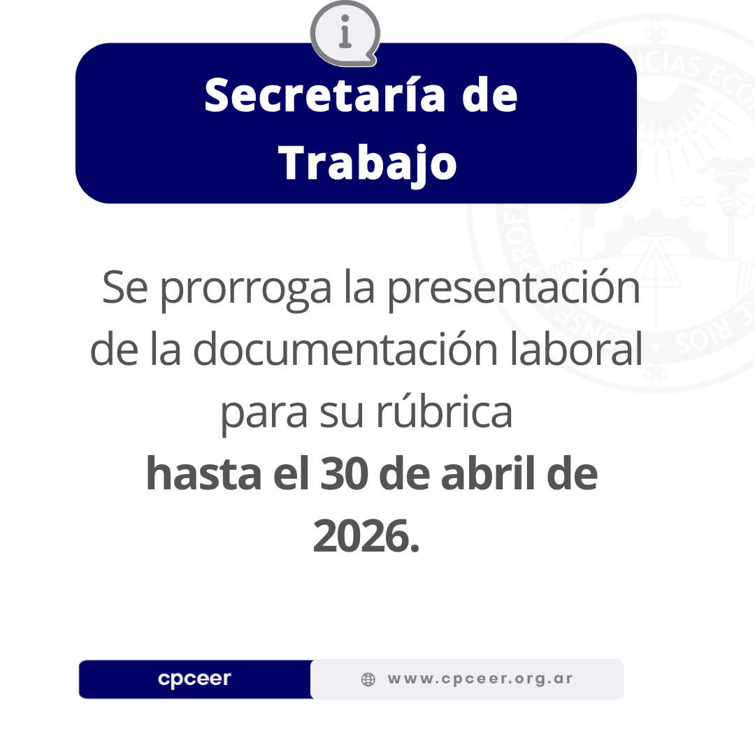 Conforme a las gestiones realizadas ante la Secretaría de Trabajo de la Provincia, mediante las cuales se solicitó la prórroga de los plazos para la presentación digital de la documentación laboral, resolvieron postergar las fechas de cumplimiento hasta el 30 de abril de 2026.