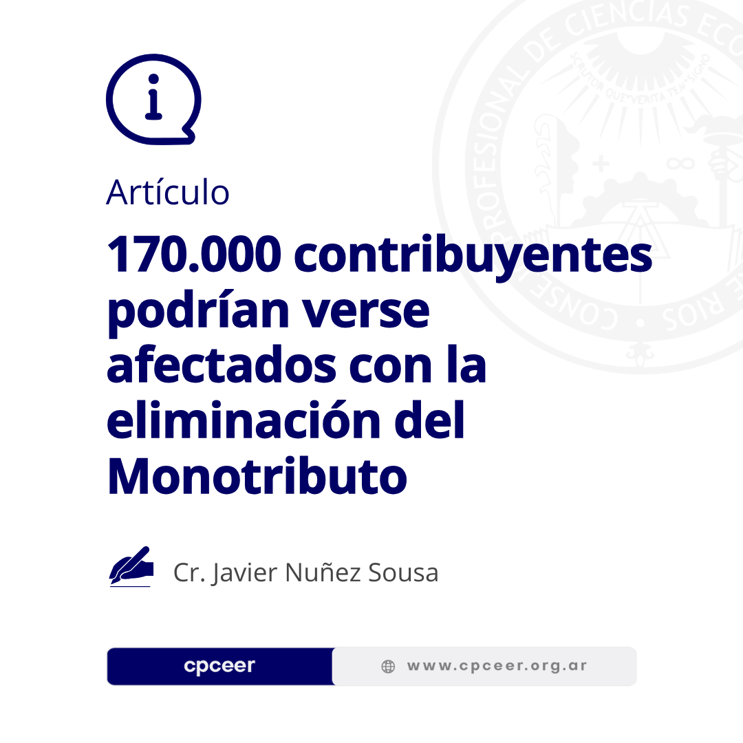 Al respecto, el Cr. Javier Núñez Souza, Coordinador de la Comisión de Asuntos Tributarios del CPCEER, analizó qué podría suceder con la supresión del Monotributo.