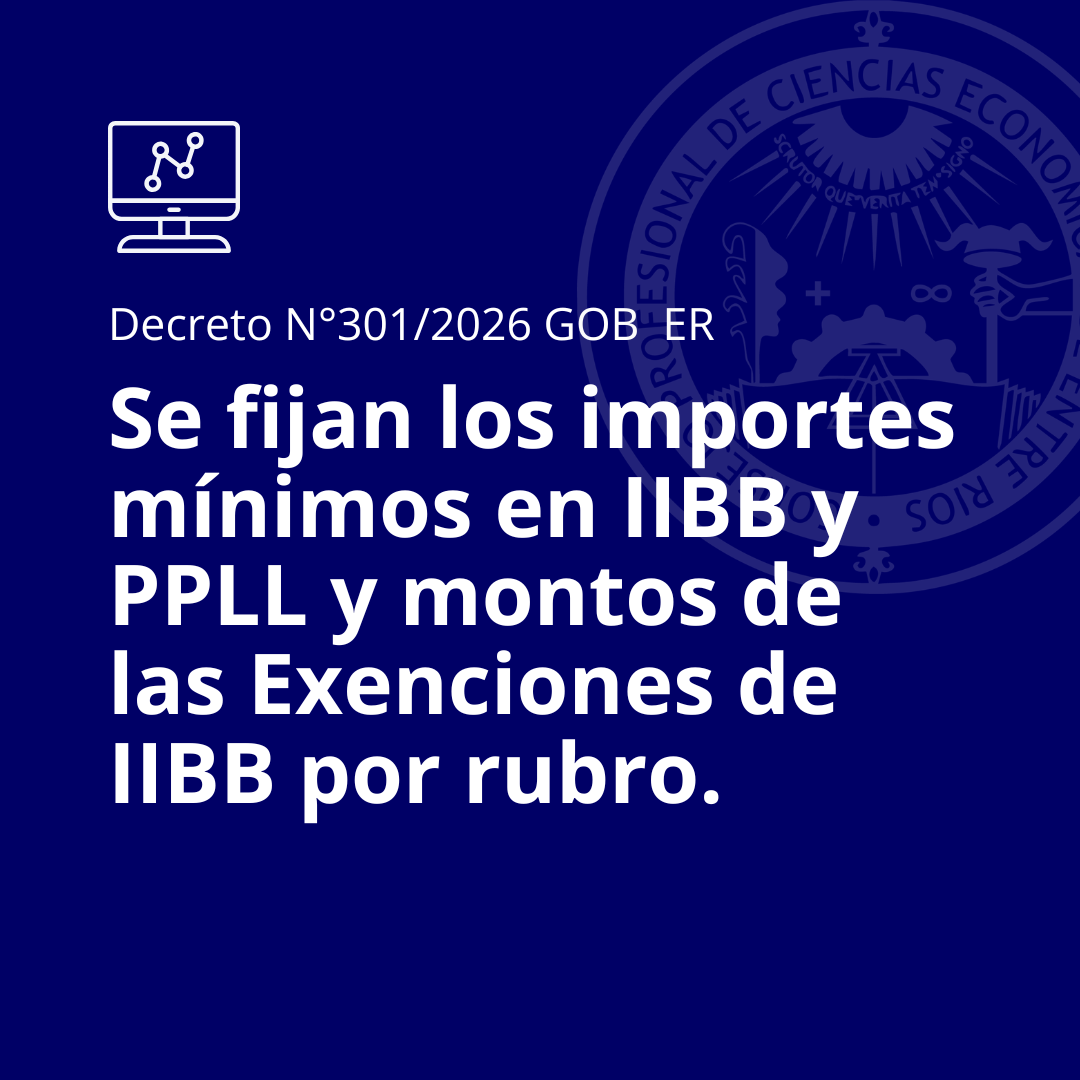 Informamos que a través del Decreto Nº 301/2026 del Gobierno de Entre Ríos, se fijan los importes MINIMOS de Ingresos Brutos y Profesiones Liberales, además de los montos de las EXENCIONES IIBB por rubro, para el año 2026.